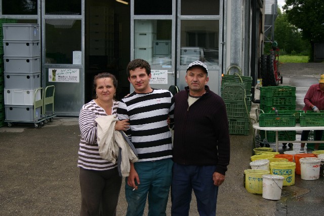 .... wollte ich um den Bodensee, habe es bis Hard geschaft und einen wunderschönen Tag mit Gitti verbracht. Hans kennen gelernt und ab gings nach Rebstein zum Traktorentreffen, wo mein Gespann sehr großen Anklang fand. Von den Traktorfreunden erfuhr ich das es in Diepoldsau Spargel gibt, dort angekommen wußte aber erst die driete Person wo es Spargel gibt und lozte mich zur Familie Sieber, die zu meinem Pech genug Mitarbeiter hatten, macht nichts dachte ich und so entstanden die ersten Fotos und Eindrücke vom Spargelschneiden. Nach zwei Tagen wollte ich eigentlich wieder weiter (um endlich Kreuzschmerzen vom Spargelschneiden zu bekommen) doch es fehlten 2 Mädels und ich konnte endlich aufs Feld zum schneiden. Im Plan waren nur zwei bis drei Tage, es wurden fast 3 Wochen. Bis auf´s aussortieren der ersten Klasse waren alle Posten dabei.